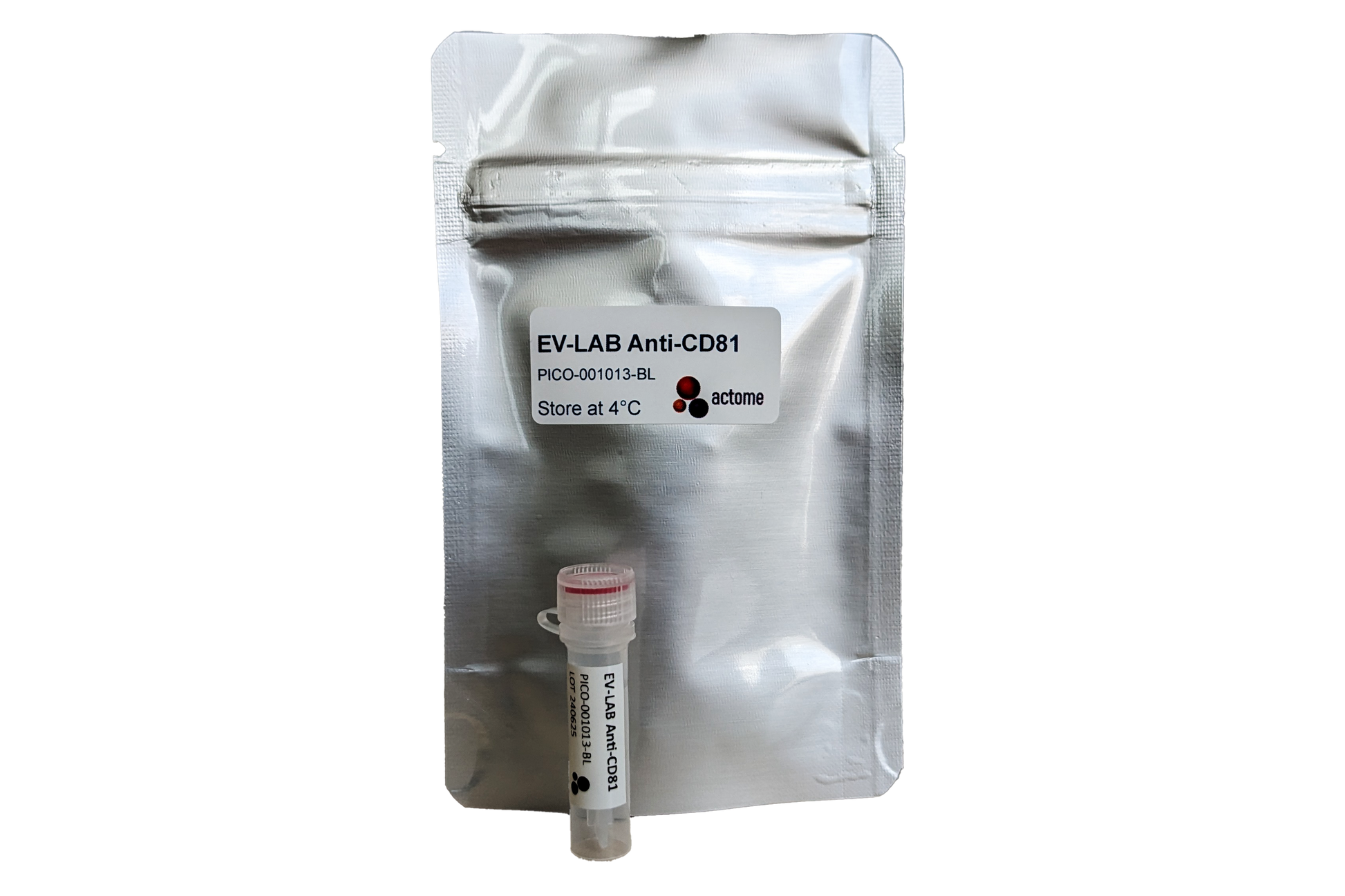 The labeled extracellular vesicle (EV) antibodies (EV-LABs) are ready-to-use reagents for PICO assays. Use it together with other LABs or your own labeled antibodies. We offer the EV-LAB anti-CD81 antibody labeled with either PICOglue BL Label or PICOglue P8 Label.