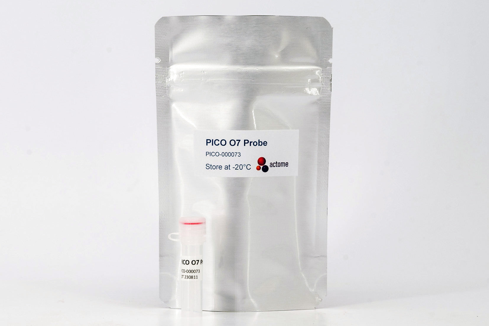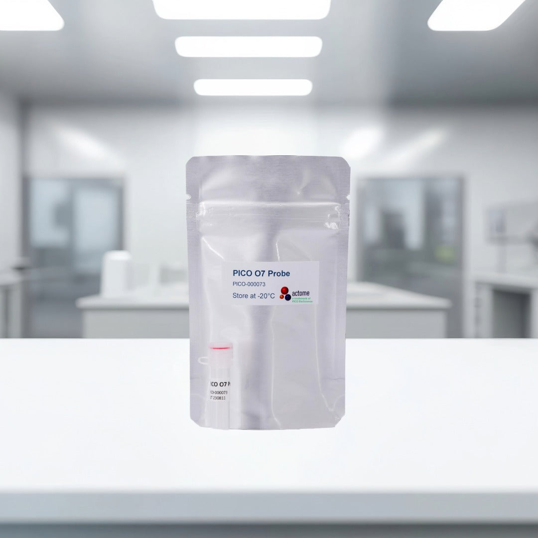 The PICO O7 Probe is designed to bind specifically to the PICOglue O7 Label and allows its amplification and subsequent fluorescent signal generation during the dPCR reaction. The PICO O7 Probe is used together with the PICO Amplification Core Kit.